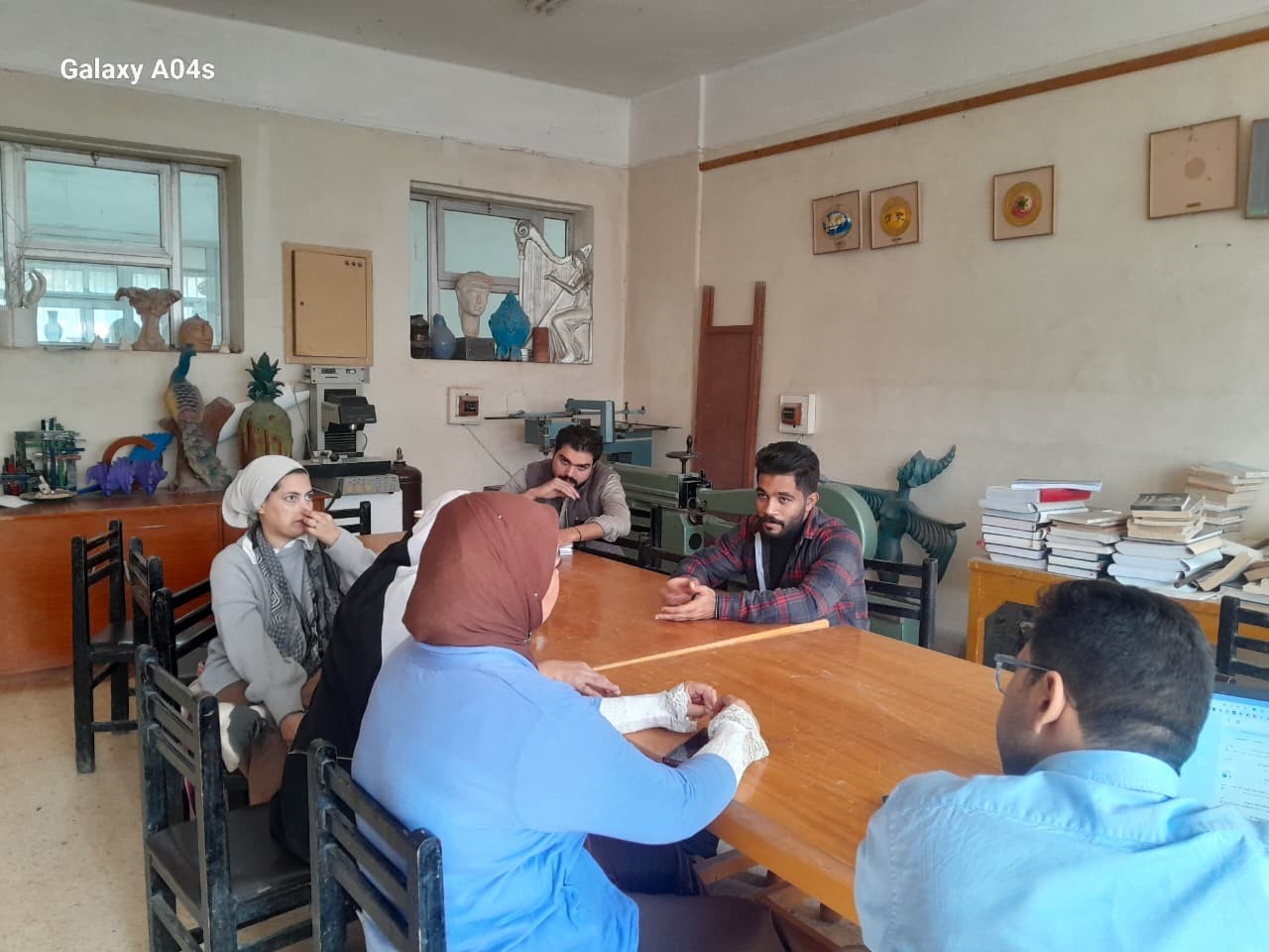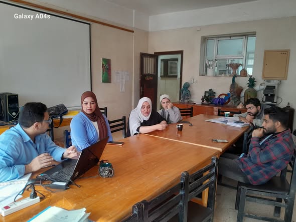 في إطار استعدادات كلية الفنون الجميلة للتقدم للأعتماد البرامجي و المؤسسي تم اليوم 8/12/2025 عقد اجتماع لفريق الجودة بقسم النحت حيث جرت مناقشة عدد من الموضوعات المهمة