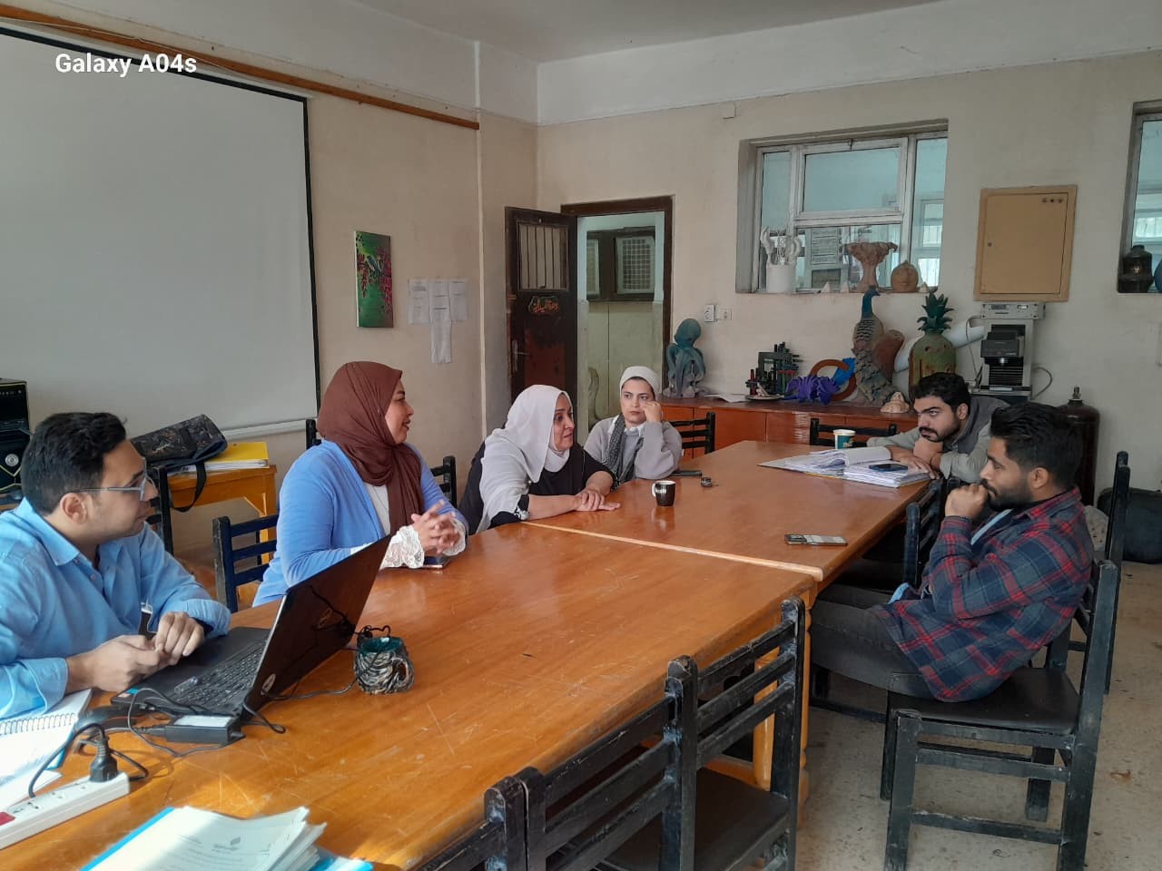 ناقش الفريق احتياجات القسم من صيانة وتجهيزات يجب تنفيذها خلال الفترة المقبلة وتمت مراجعة خطة إعادة تجهيز غرفة الجودة لاستعادة دورها كمكان للاجتماعات والعروض مع تفعيل استخدام شاشة العرض وباقي التجهيزات التي كانت متاحة سابقا .وفهرسة الكتب الخاصة بمكتبة القسم وترقيمها داخل دفتر اطلاع، بما يسهل متابعة الحركة داخل المكتبة والرجوع للكتب عند الحاجة.