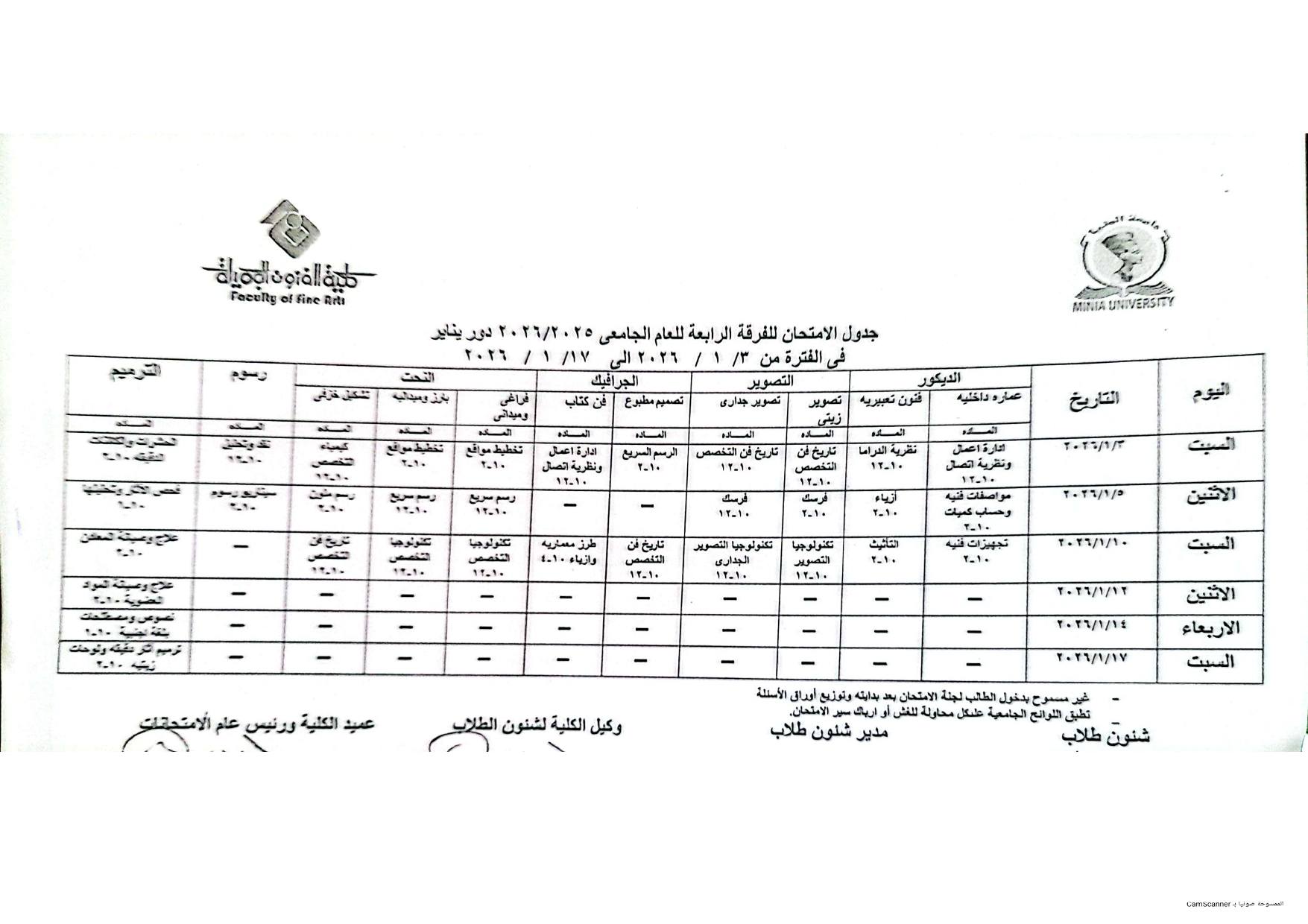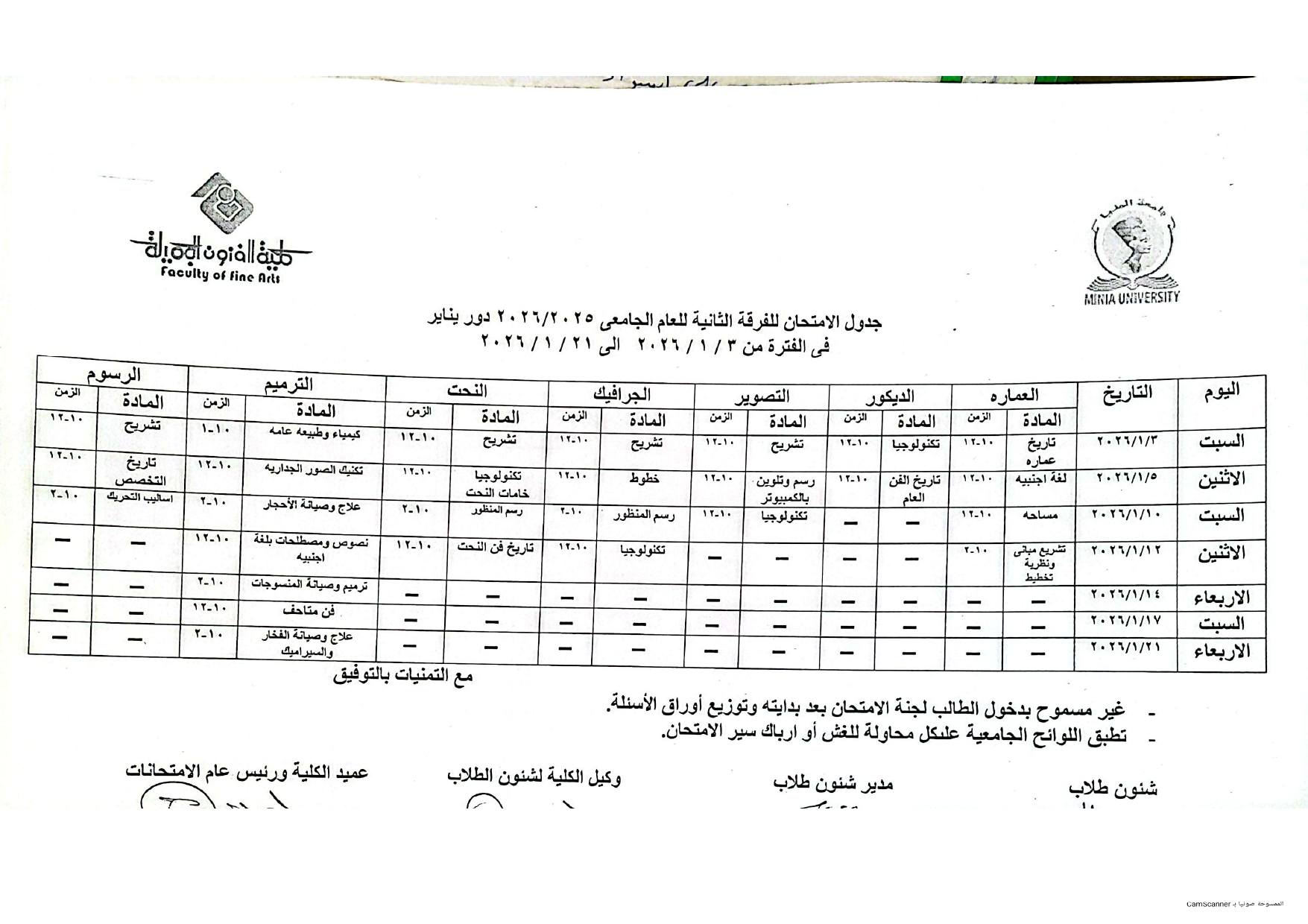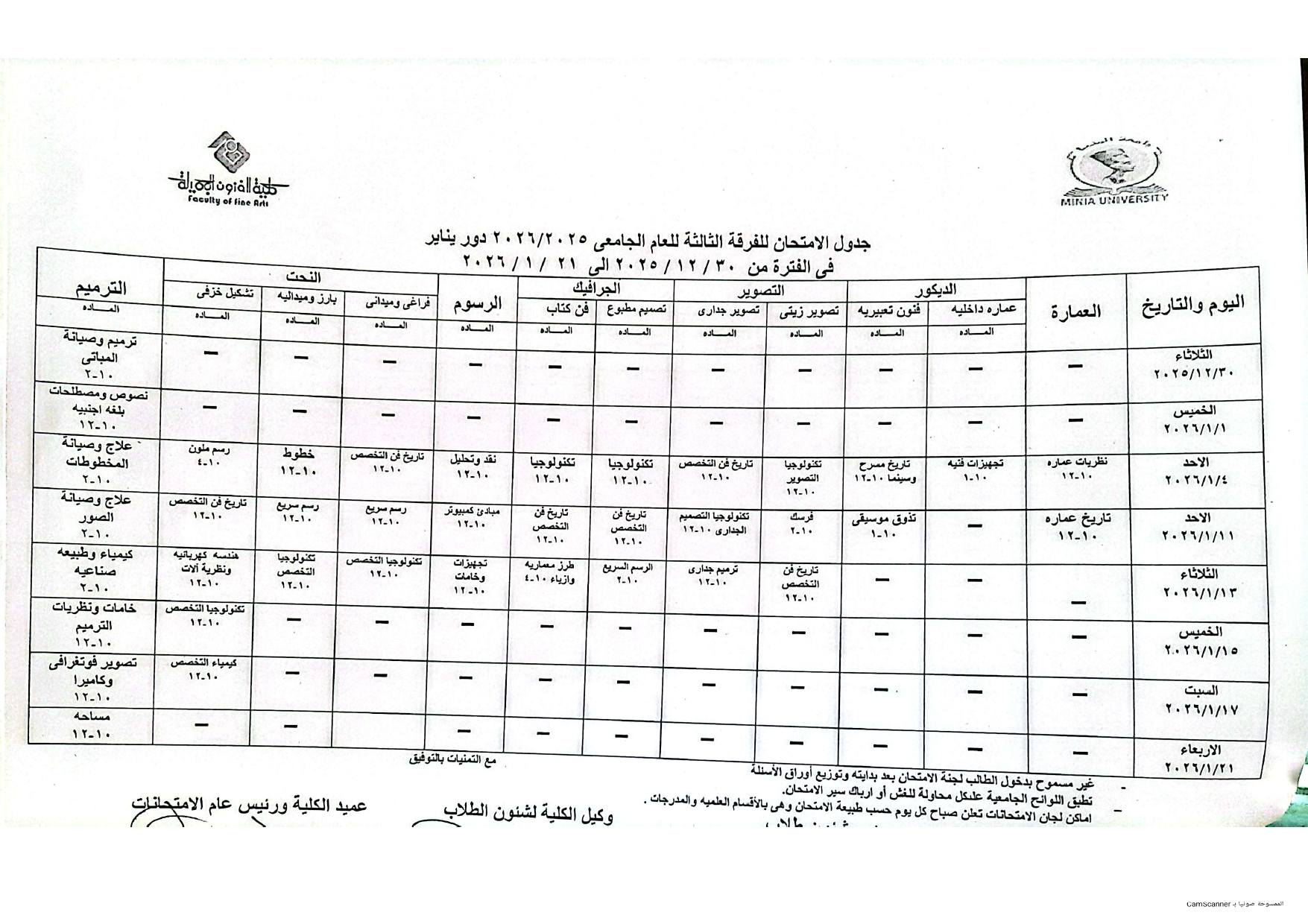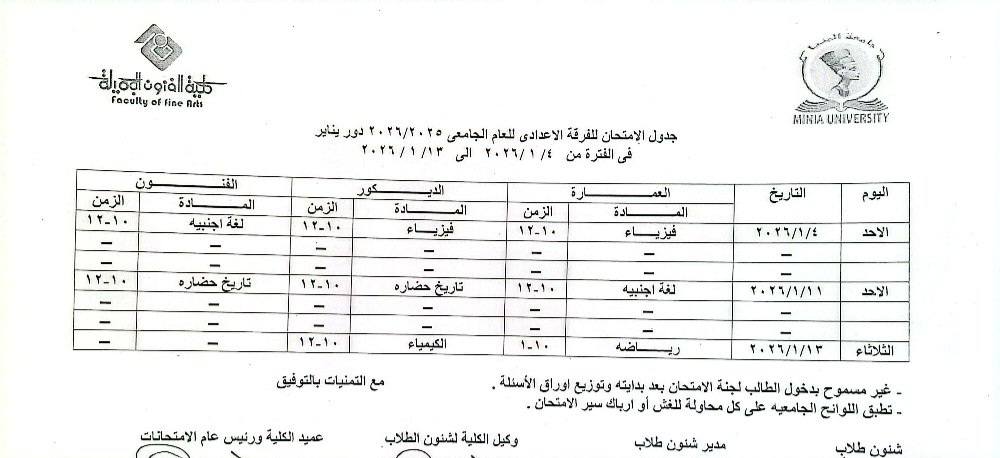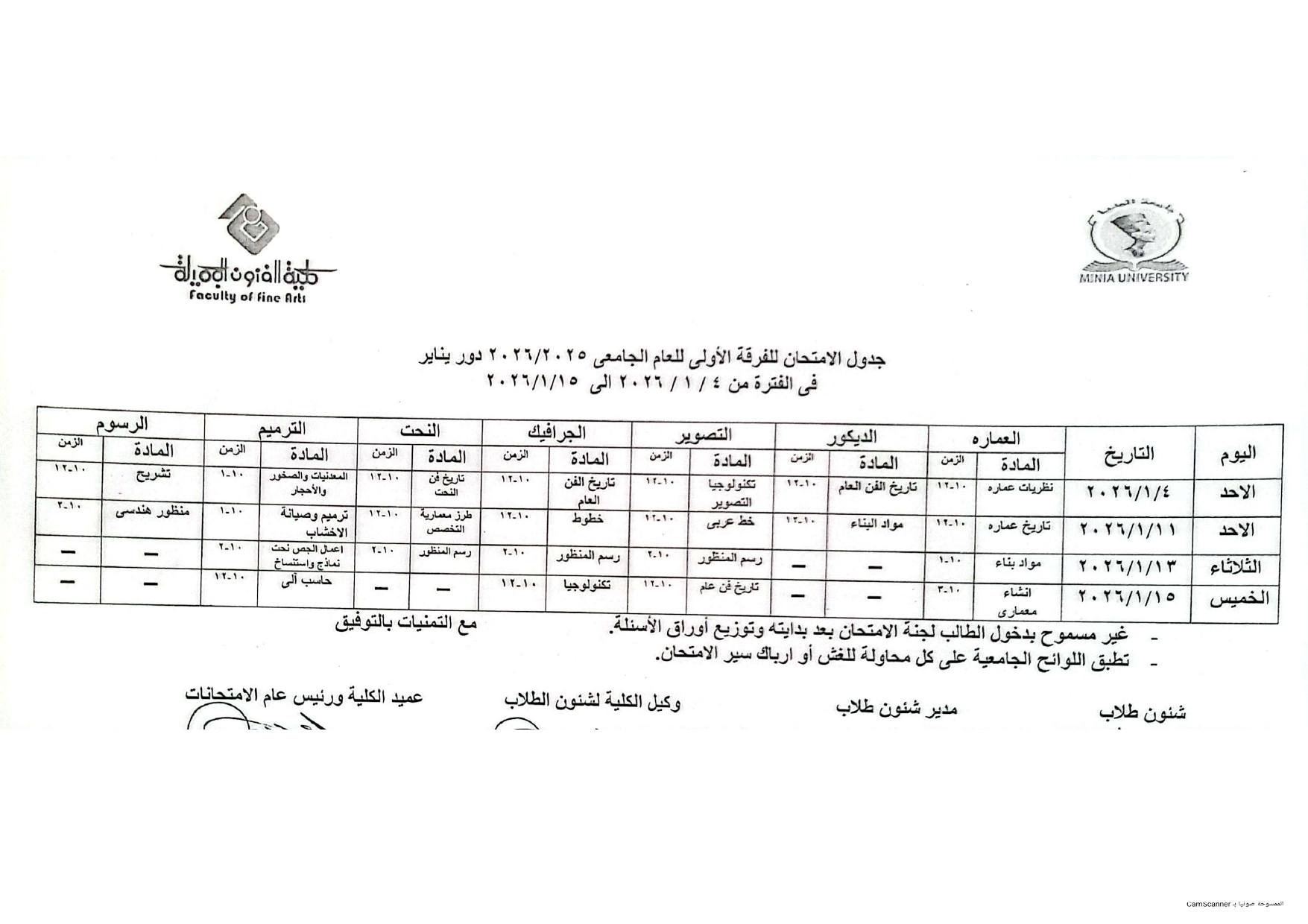 جداول امتحانات الفصل الدراسي الاول للعام الجامعي 2025-2026