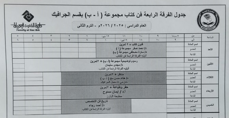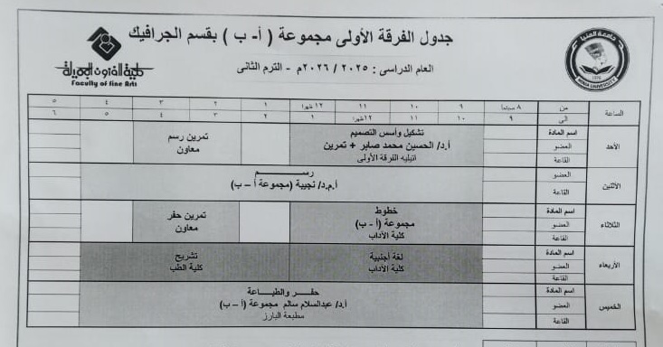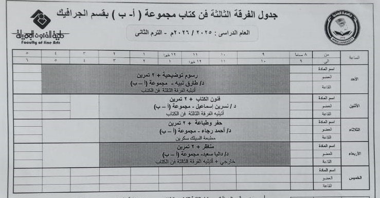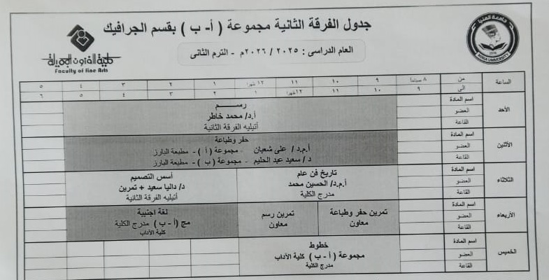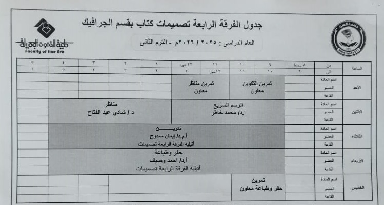 جدول الفصل الدراسي الثاني قسم الجرافيك كل الفرق