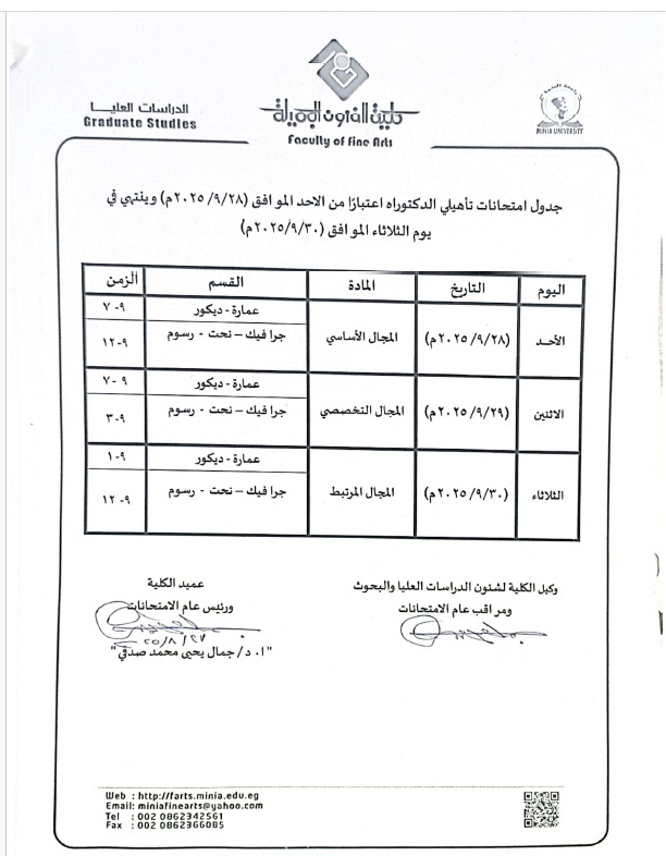 Calendario de exámenes de doctorado para el año académico 2025-2026