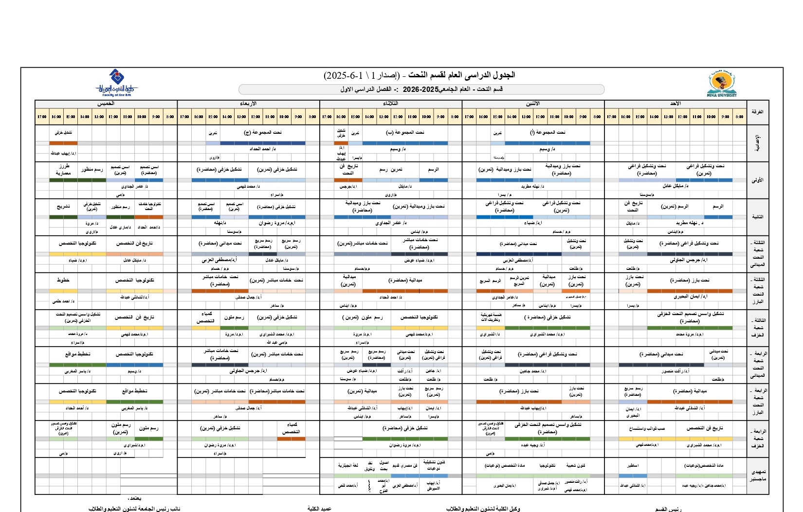 Horario de clases del Departamento de Escultura para el primer semestre del año académico 2025-2026